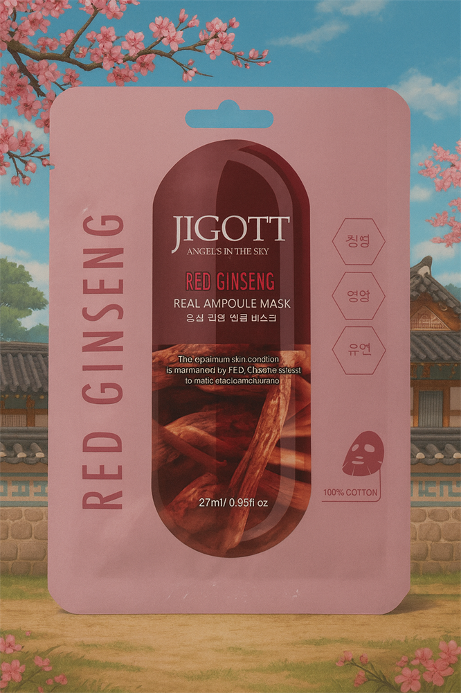 Jigott Red Ginseng Real Ampoule Mask — тканевая маска для лица с экстрактом красного женьшеня
