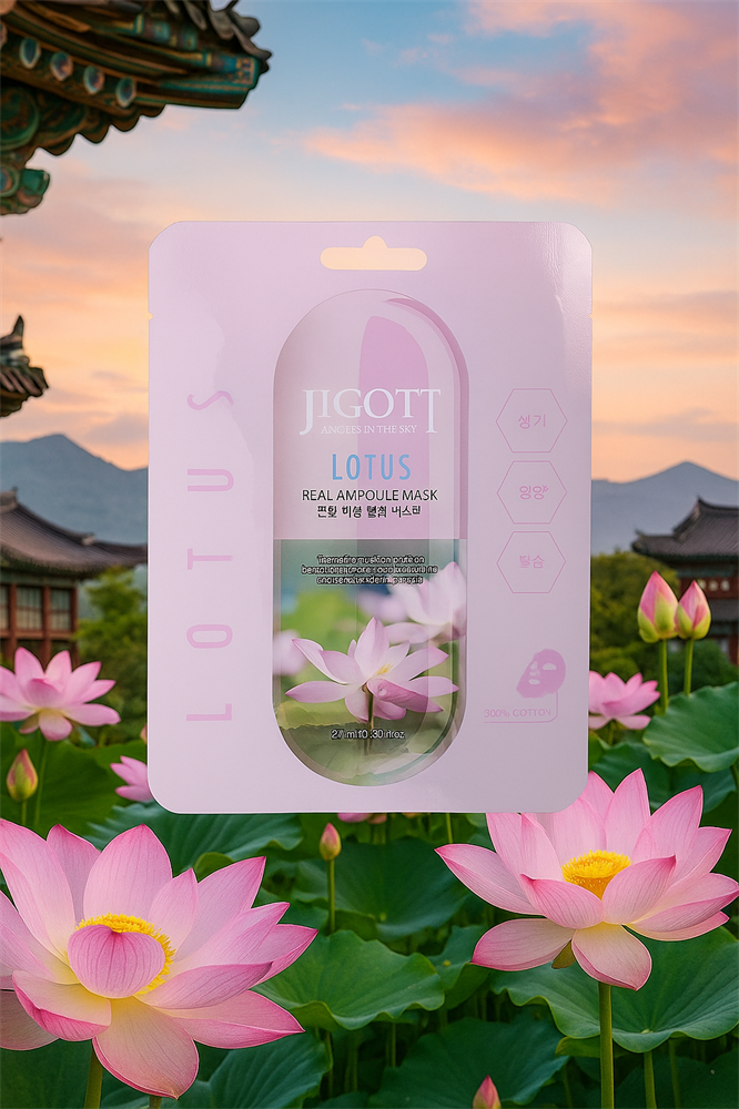Подарите коже свежесть, чистоту и естественное сияние с тканевой маской Jigott Lotus Real Ampoule Mask!